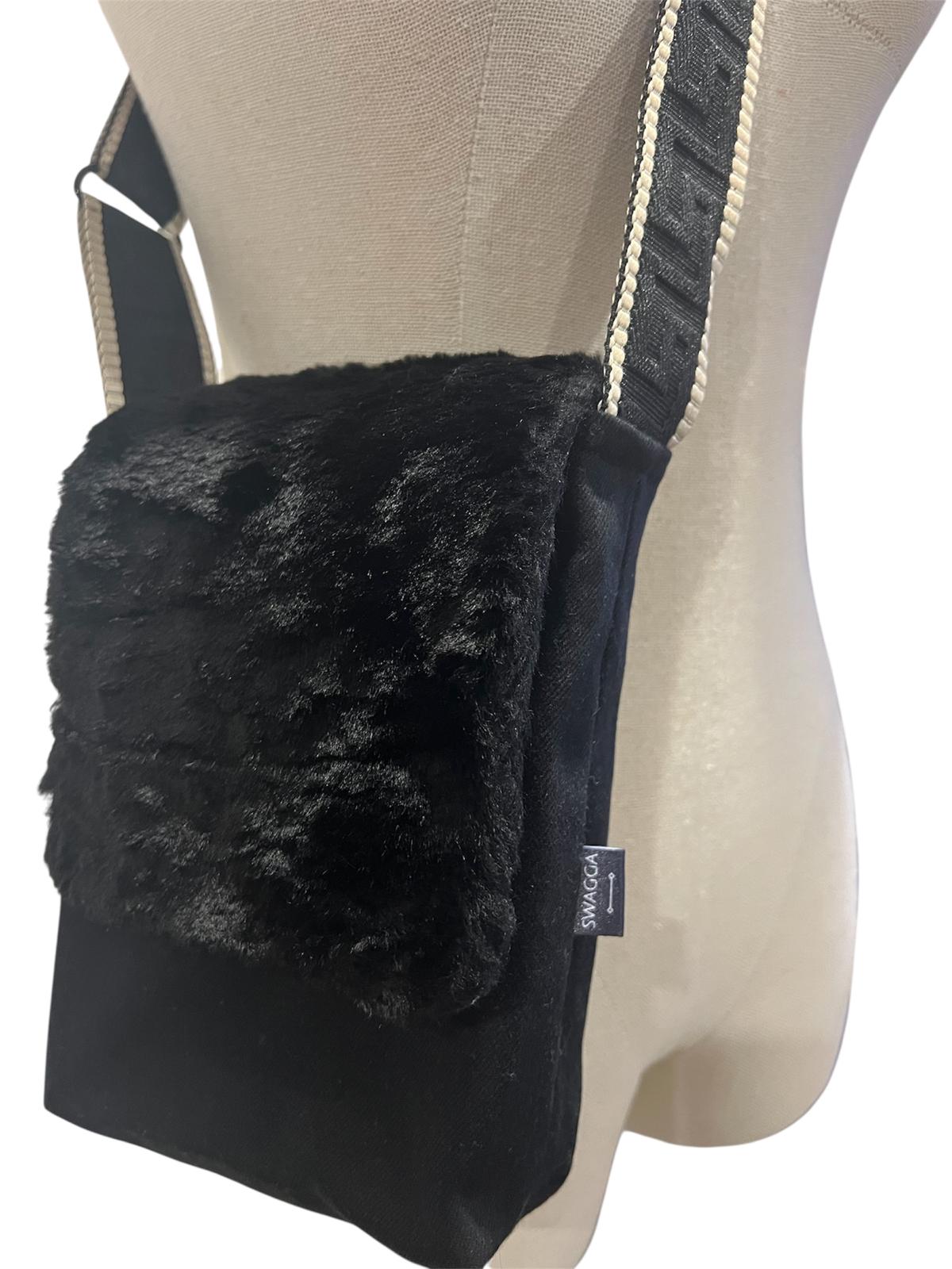 - Faux fur external flap with pocket and magnetic button clasp
