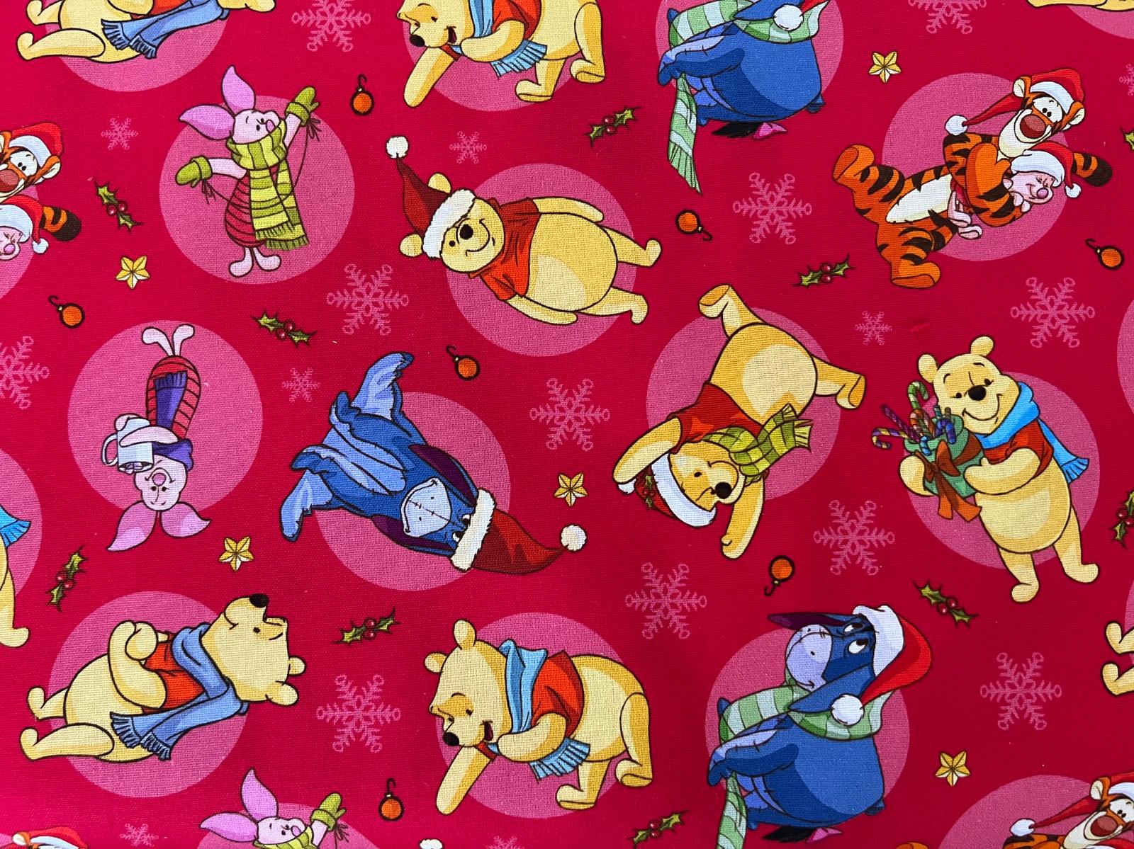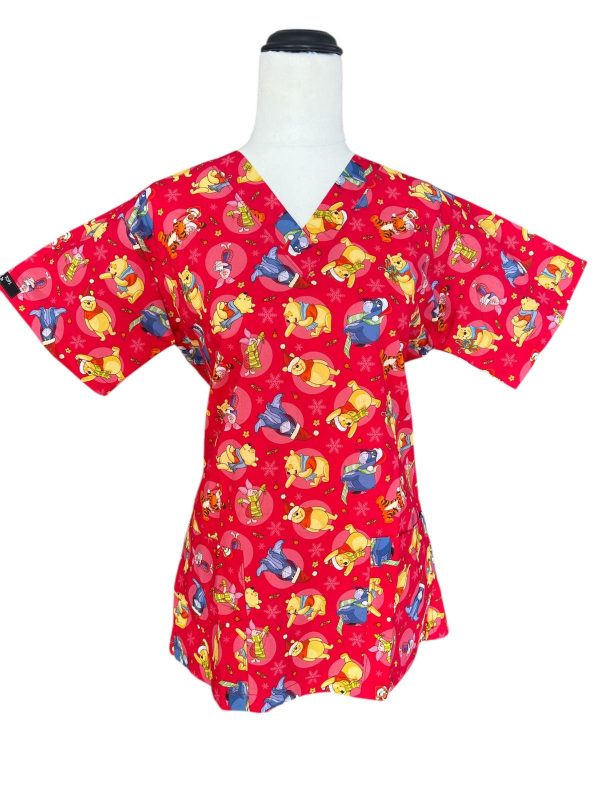 Winnie the Pooh Christmas Scrubtop in Red. Features Pooh and all his friends.